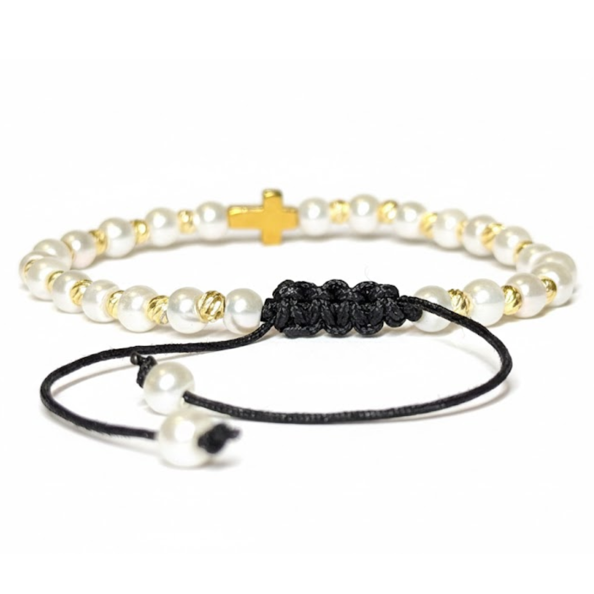 Bratara Reglabila AURRA® cu Perle Albe si Pandantiv Cruce, Elemente din Metal, Marime Universala